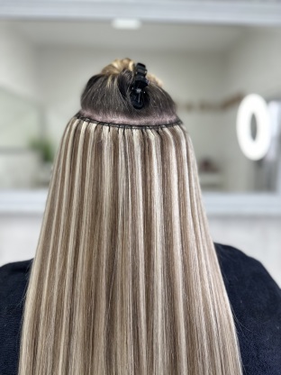 Beaded-Row-Extensions für luxuriöse Fülle und perfekte Länge. Leicht, komfortabel und individuell angepasst für ein natürliches Finish.